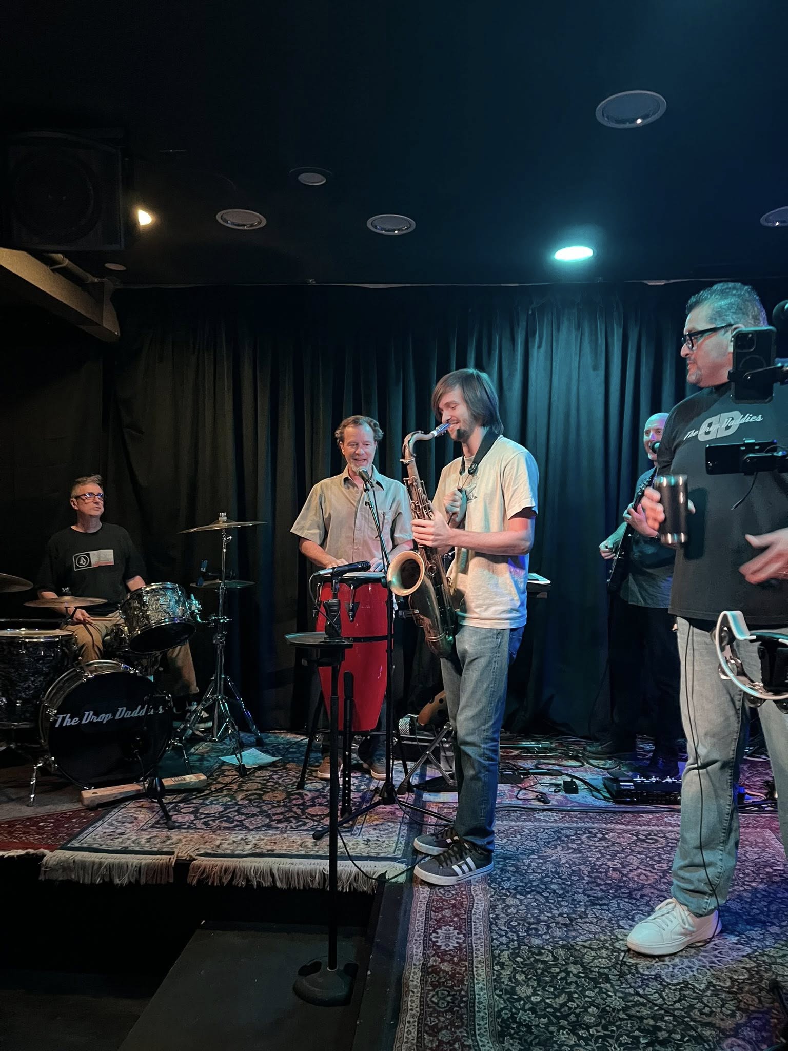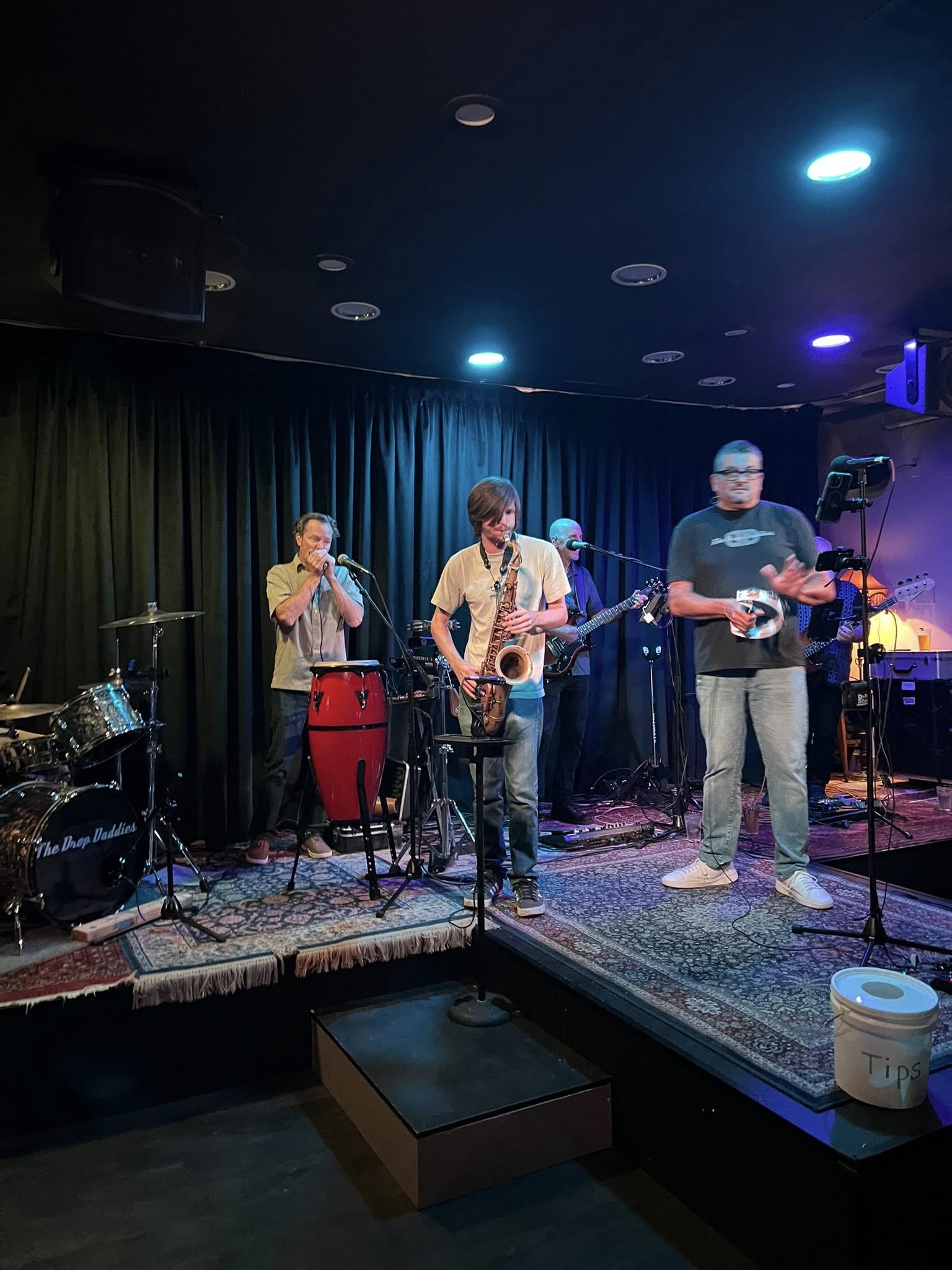 Just a random night in September- a perfect time to rock at Norms Place in Danville. It was our first time playing with our old pal Chuck on bass, and the first time with Xeno’s son Kai sitting in on sax for Modern Love, and Magic Carpet Ride. Good vibes all around!